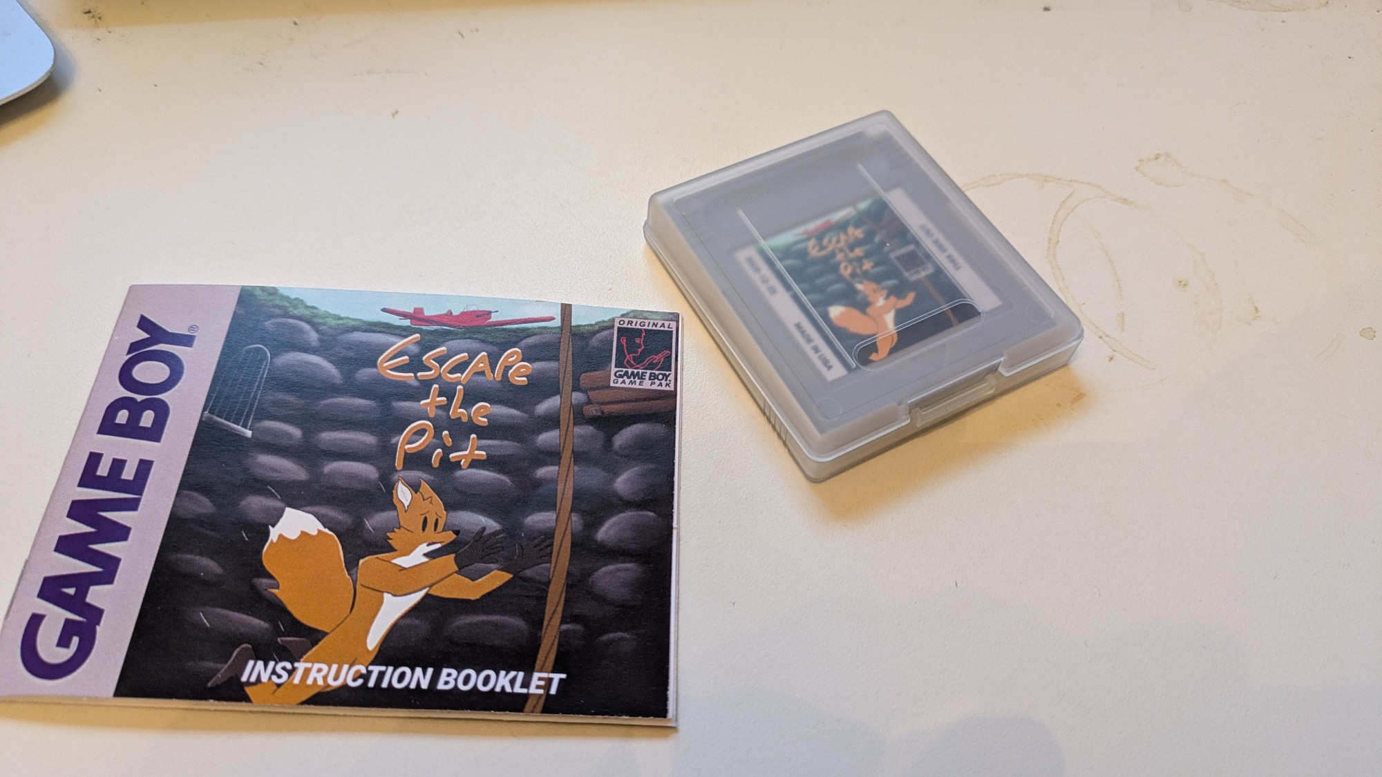 Something incredible happened. I got back from lunch to a package from game developer Daniel, who I met at the GDC and is to my knowledge the only person on earth to finish Crystal Slaves. He had made a physical copy of my last game - Escape The Pit. Complete with a working GB cart, a full manual, and a complete box. It's probably one of the best gifts I've ever gotten just in terms of the amount of work that must have had to go into it. Like, the box needed to be specially die cut in order to fold together correctly, and it included an inner box insert to keep the cartridge in place. I am simply just going to have to return the favor by making ANOTHER gb studio game and creating a boxed version to send back.